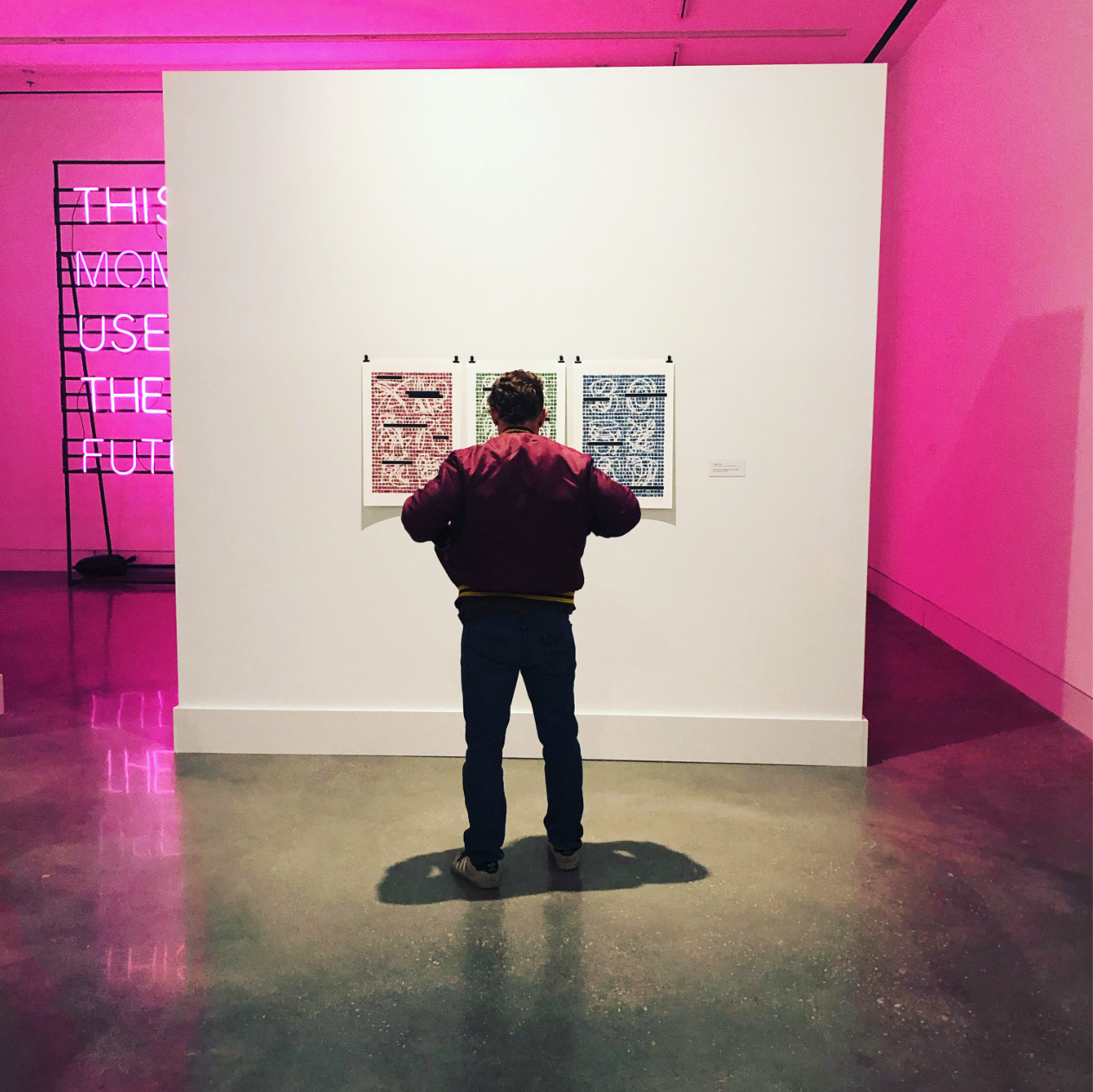 Andrea Karnes, the Senior Curator at the Modern Art Museum of Fort Worth, selected the experimental typography series for the Faculty Show exhibited in 2020 at the University of North Texas College of Visual Art and Design CVAD Gallery. The visual forms explore the relationships of symbols, typography, and composition with subjective interpretation, unintended meanings, redaction, and disinformation.